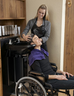 The Adjust-a-Sink works with a standard salon chair. It also accommodates a variety of wheelchairs, which allows the client to remain in their wheelchair while they have their hair shampooed. Your salon will be accessible for all clients.