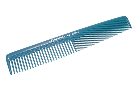 * Overall Dimension: 7/8 to 1-1/4" tall x 7-1/8 inches long x 1/8" thick * Half the comb is 25 - Medium/Coarse Teeth and Half the comb is 64 - Fine Teeth * The Medium/Coarse Teeth are All 3/4" Long * The Fine Teeth are 11/16" Long in the center Tapering to 1/2" on end * The Back Edger of the comb is Straight * Comb Color: BLUE When compared to the Comare #401 this comb is a little bit longer (1/8") and the teeth are a little bit longer on both the bigger teeth and the finer teeth. There is the same number of Fine Teeth but 5 less (25) bigger teeth on the #400 The Comare® product line of combs was established on three basic principles: creativity, design and Celcon®.