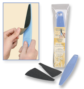 Flowery D-Files Foot File System * Get all the benefits of the Swedish Clover Fot Fil handle, while using interchangeable, self-adhesive abrasive pads for each client