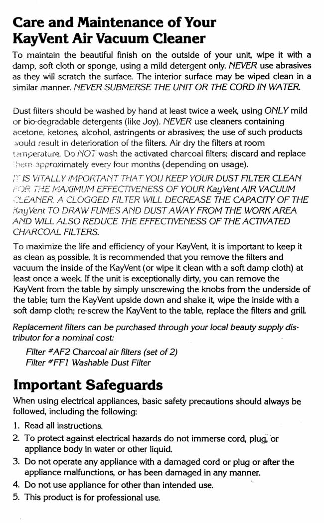 Kayline Ventilating System Installation Instructions & Care and Maintenance |