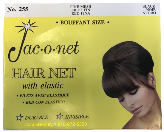 Jac O Net 255 black bouffant size hair net with elastic 46181702554 yellow envelope package 814721010084