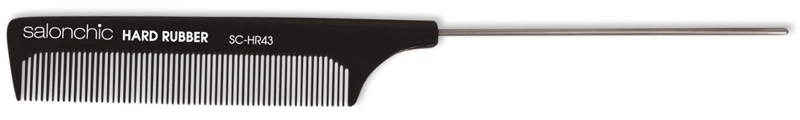 # SC-HR43 8.5" Pin Tail Comb Size: 8-1/2" Long X 15/16" Tall X 3/16" Thick All Half Fine Teeth * Teeth area is 3-3/4" long with a Slight Arch in back Stainless Steel Pin Tail is 4-1/2" Long 100% Genuine Hard Rubber High Heat Resistant Professional Strength and Durability Gental on Hair and Scalp Made in India Color: Black |