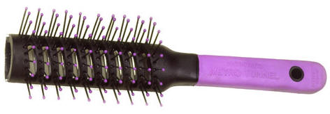 Features heat absorbing, aerated curved metal back which creates a tunnel resulting in greater air-flow for faster styling, drying, and volumizing.