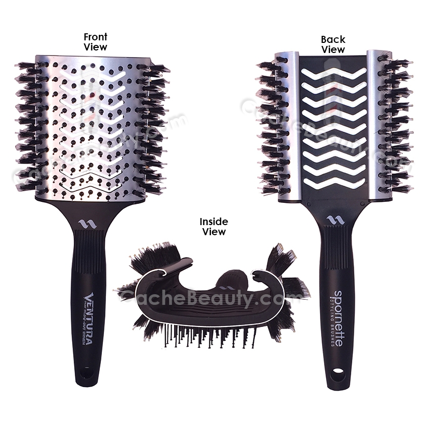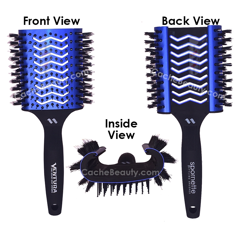 The Ventura provides the best of both worlds! This is a hybrid brush combining the best of a round brush and a vented paddle brush. Curl, flip or straighten all with one comfortable and convenient tool.