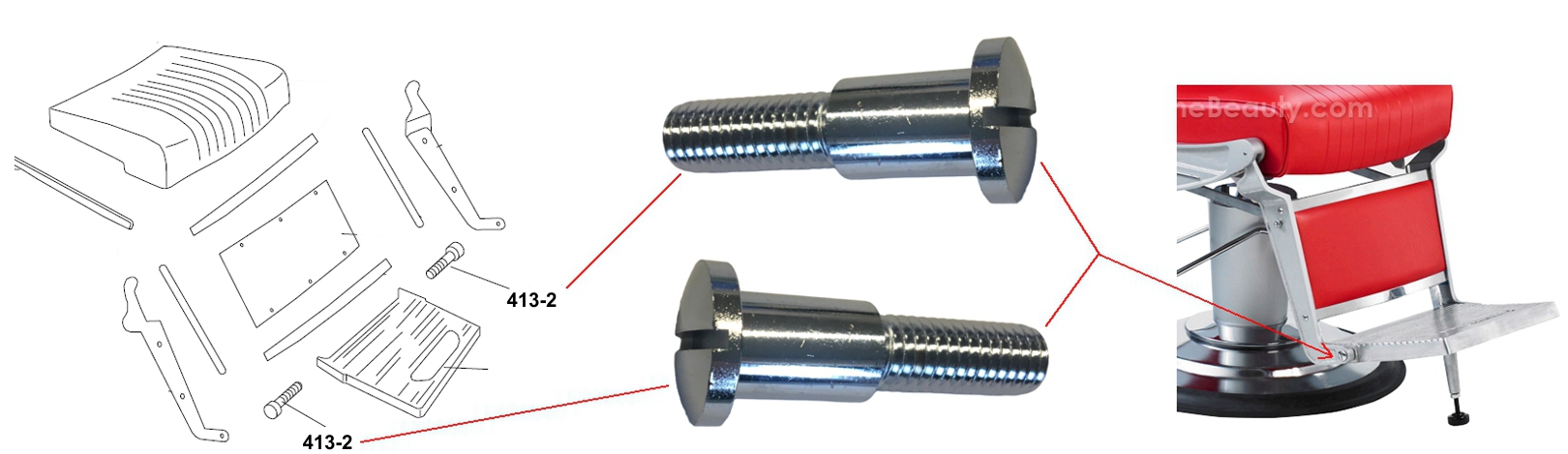 model BB-225 BARBER Chair PART: BOLT (# 417-4 in schematic) that connects the (# 417-1) Reclining Connecting Bar and the (# 406-1)(R&L) Gooseneck |