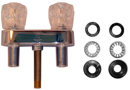 Fits ONLY SalonTuff #338 Two Handle Fixture *** Fits ONLY SalonTuff #338 Two Handle Fixture * Purchase Replacement Handles Separately: "Hot" Item # 732521883199 and "Cold" item # 732521383194 |