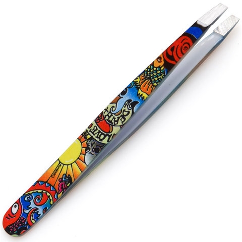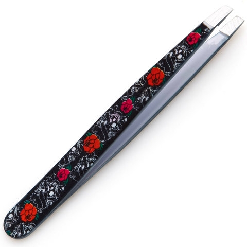 TATTOO TWEEZER SLANT SS * SKULLS #48681 * * Made in Italy These slant tip tweezers are ideal for shaping eyebrows and tweezing stray hair anywhere on the body. The specialized coating on the tweezers ensures that your inked design will not fade, flake or scratch off...