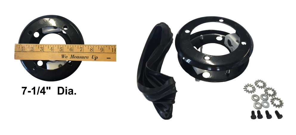 Marble Products Shampoo Bowl TILTING MECHANISM * 7-1/4" Outside Diameter * Fits: Marble Products Shampoo Bowl Model #5000 ONLY!!! * Shown here fitting the Takara Belmont Liberty Shampoo Unit * 4-1/2" Inside Diameter * room for the drain assembly * Material: Metal, Plastic and Vinyl * Metal Frame * Vinyl Boot to Cover Frame * Color: Black